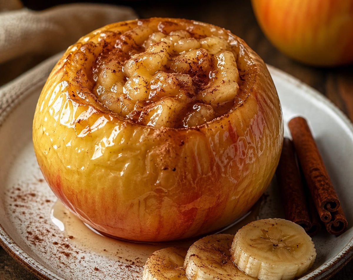 😜 Яблочко сорта "Голден"… 1 Срезать "крышечку" 2 Вырезать сердцевинку, начинить бананом с корицей 3 Накрыть "крышечкой". 4 Налить на поддон чуть-чуть водички и запекать… Мммм… Вкуснятина 😁 #кухня #рецепты