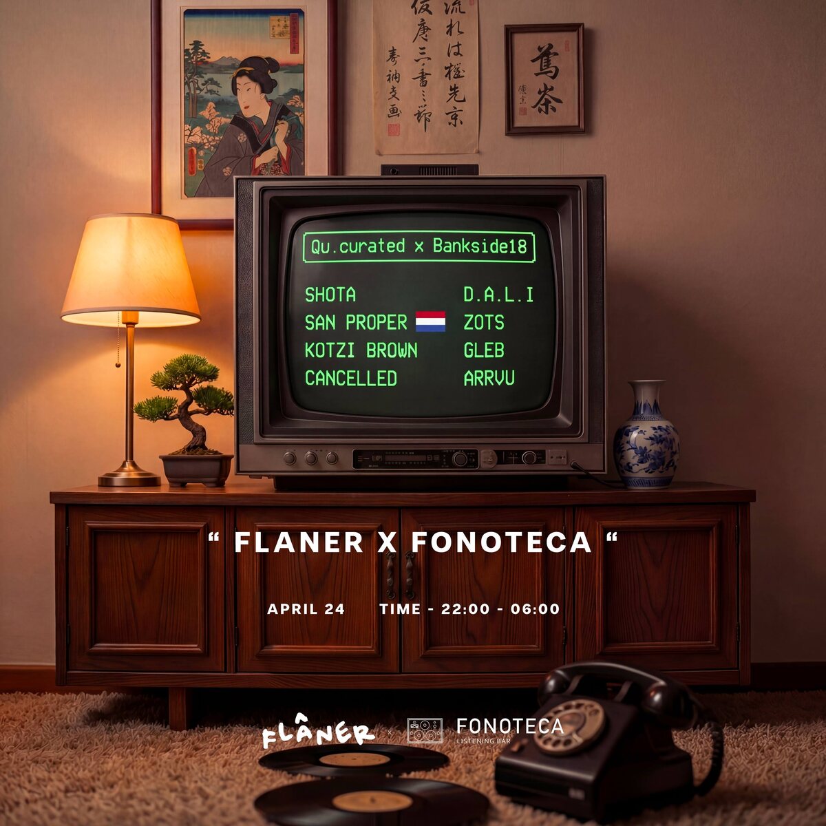 24 апреля Ресторан Flaner и Listening бар Fonoteca при поддержке букинг агенства Bankside18 привозят из Амстердама артиста с большой буквы и самого главного панка вселенной SAN PROPER! Локальную поддержку гостю окажут культовые диджеи Москвы - D.A.L.I, ANDREY ZOTS, KOTZI BROWN, SHOTA, CANCELLED, GLEB + ARRVU. Ждем Всех невероятно наряженными и красивыми! 🎫 Билеты 📆 24 апреля, в 22:00 📍 Flaner & Fonoteca, Кривоколенный пер., 7, Москва