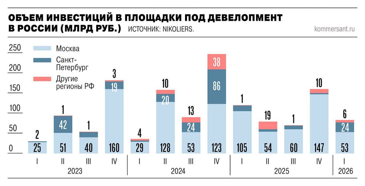 Мы не бездумно хапнули — мы проинвестировали… Коммерсант пишет о снижении объема «инвестиций» в землю на фоне объективной невозможности продать построенное. 🔺Треугольный метр: На сайте | в MAX | Telegram | ВКонтакте | Дзен