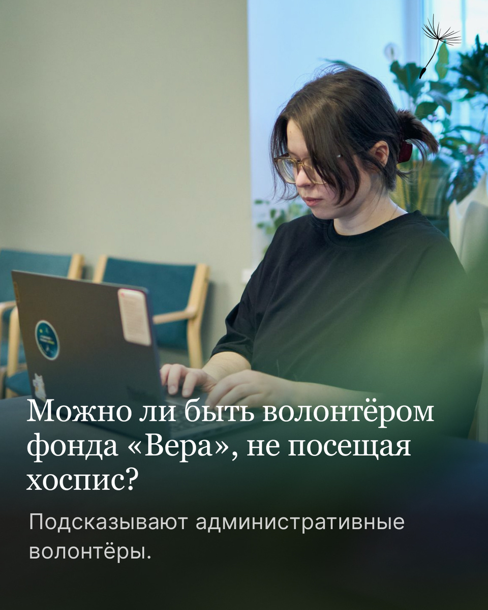 Да! Например, помогать онлайн, если вы находитесь далеко. Или организовывать с нами мероприятия, если вам морально тяжело находиться в хосписах. Таких волонтёров мы называем административными. Они выполняют тысячи полезных задач: привлекают и обучают других помощников, заполняют базы данных, фотографируют и снимают видео на мероприятиях фонда и многое другое. Сегодня мы спросили Юлию, Ксению и Юлию, чем они занимаются на этих позициях и почему для них важно волонтёрить в фонде «Вера». Если для вас это идеальный вариант, присоединяйтесь к ознакомительной онлайн-встрече для новичков: Записаться на ближайшую встречу можно на нашем сайте. Предварительная регистрация обязательна. Проект «Мастерская волонтёрской заботы» реализуется за счёт средств Гранта мэра Москвы.
