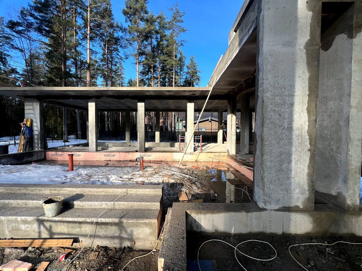 Зимой мы построили коробку монолитно-кирпичного дома площадью 918 кв.м.