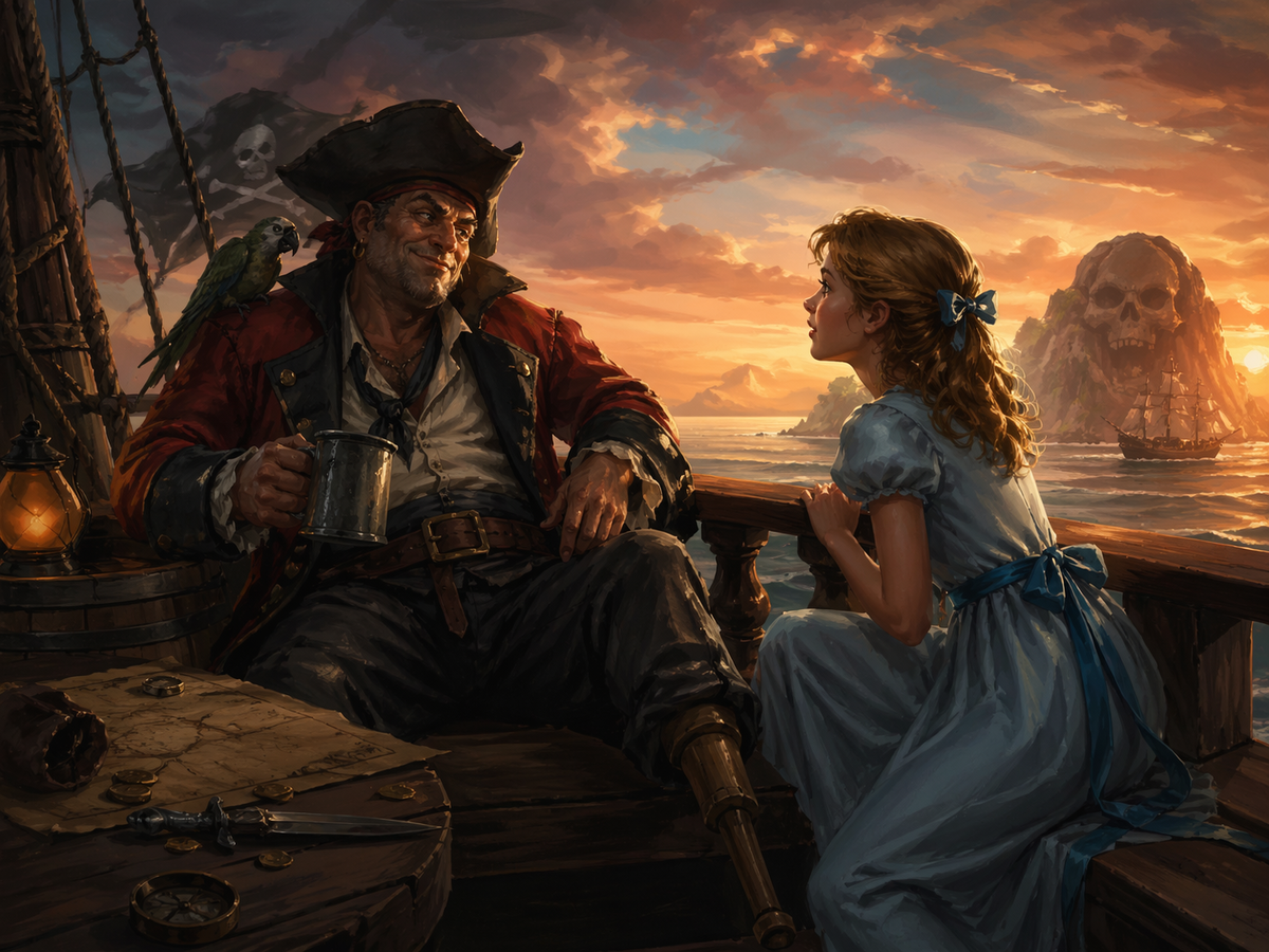 Кстати, интересный момент. Стивенсон и Барри были знакомы. Они оба входили в литературные круги Лондона, оба были шотландцами, оба дружили с Хенли. В итоге два друга взяли из одной семьи отца и дочь и разнесли их по разным полюсам литературы. Один - в жестокий приключенческий роман о пиратах, золоте и предательстве. Вторая - в сказку, которую читают детям перед сном.