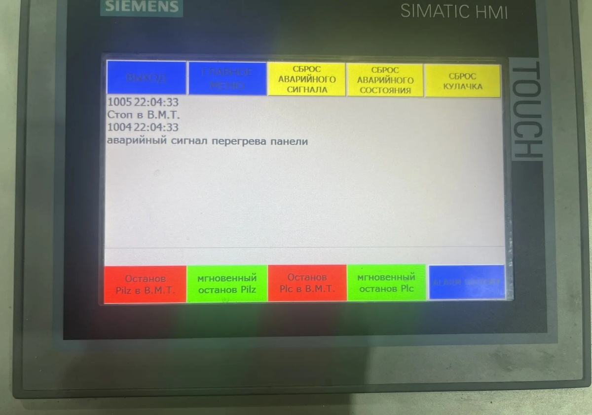 Сброс. Идем к панели, нажимаем «СБРОС АВАРИИ» — и вуаля, станок снова в строю!