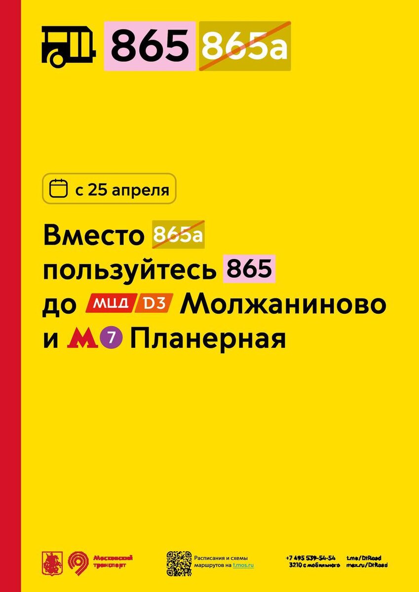 В своем анонсе дептранс столицы напугал химчан и москвичей из Подрезково и Молжаниново отменой некоего маршрута 865а. В ХимкиGO читатели написали сразу десяток обращений. Мы всё выяснили для вас. Мосгортранс отменяет спецмаршрут 865А МЦД Лобня — Перепечинское кладбище. Его рейсы выполнялись одним микроавтобусом, а по документам он относился к основному 865-му, соединяющему Перепечинское кладбище, Новоподрезково, Молжаниново и метро Планерная. Основной 865 и укороченный 865к отменять не собираются. Наоборот на этом направлении добавится новый маршрут 1484 проекта «Москва — область». 📱 ХимкиGO — это база. 📱 МАХ ХимкиGO — это копия. 📱 Дзен ХимкиGO — это удобная лента новостей. 📱 ВК ХимкиGO — это ВК.