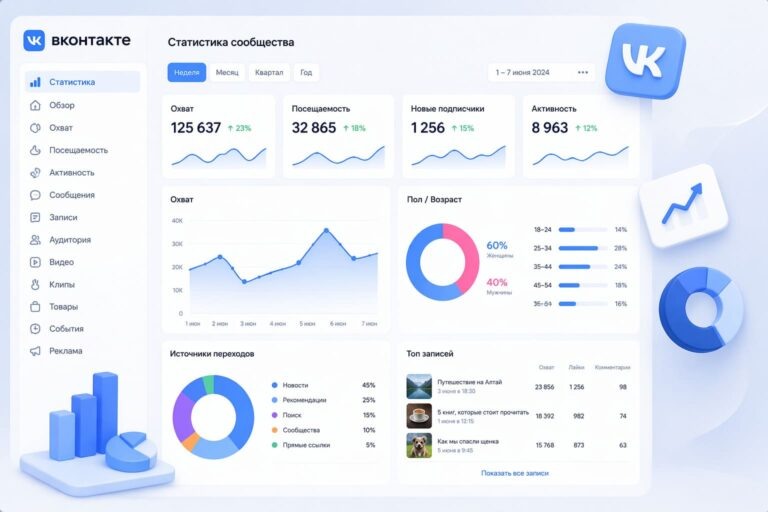 ВКонтакте — одна из крупнейших социальных сетей России: более 100 миллионов активных пользователей ежемесячно. Для бизнеса и авторов это означает огромную потенциальную аудиторию, но только при одном условии — если понимать, что работает, а что нет. Именно для этого существует встроенная статистика ВКонтакте. Разбираем как её найти, что означают все показатели и как использовать данные для роста.