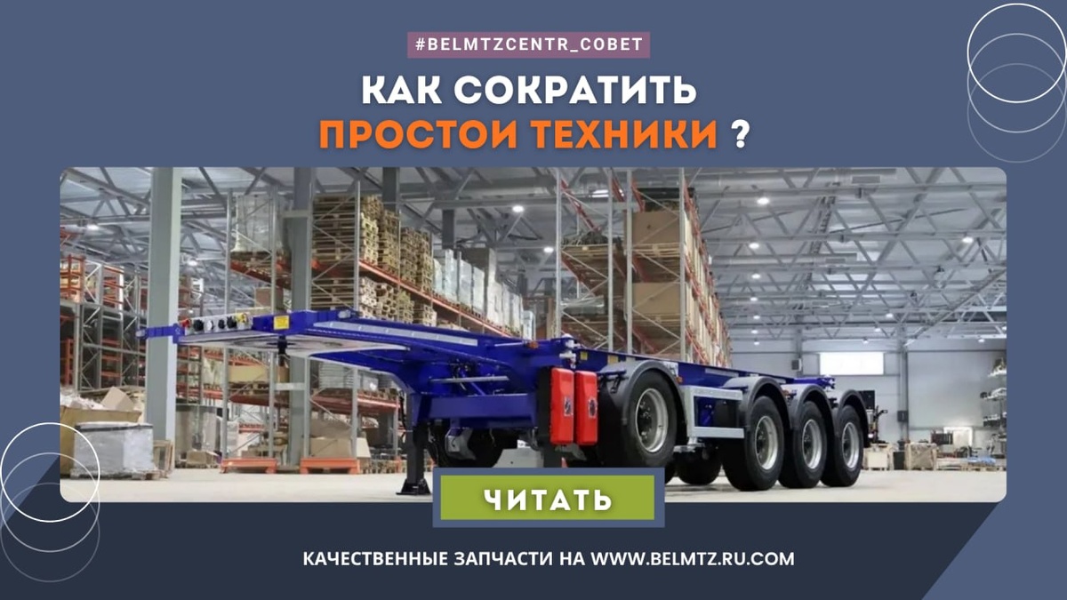 ? 80% внеплановых простоев происходят из-за отказа трех систем. На них нужно обращать внимание ежедневно. Больше половины внеплановых простоев происходят из-за отказа трёх систем: тормозов, сцепного устройства и электрооборудования. И почти всегда эти отказы можно было предотвратить. 💥 Главные рекомендации, чтобы техника не стояла: ➡️ Унификация. Стройте парк вокруг одного производителя осей и ключевых компонентов, так проще держать запчасти на складе. ➡️ Критический минимум ЗИП. Держите под рукой: клапан уровня пола, датчики ABS, тормозные накладки, шкворень. ➡️ Контроль тормозной системы. Влажность в пневматике и износ колодок являются главными причинами простоев на трассе, проверяйте это ежедневно. ➡️Обкатка. Первые 2-3 тысячи километров необходим "щадящий режим". После 2-5 тысяч пробега нужна обязательная регулировка тормозов с нагрузкой. ➿➿➿➿➿➿➿➿➿➿➿➿➿➿➿➿➿➿ 🔰БелМТЗцентр❕У нас есть то, что вам нужно😉 Ищи все необходимые запасные части⚙️ в нашем каталоге👇 🌐 www.belmtz.