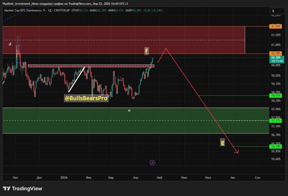 Π’Π΅ΠΊΡΡΠ΅Π΅ Π·Π½Π°ΡΠ΅Π½ΠΈΠ΅: 60,38% BTC.D ΠΏΠΎΠ΄Ρ