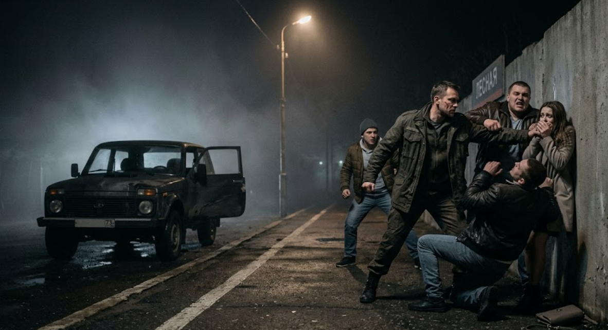 Сквозь шум крови в ушах она не услышала, как к платформе бесшумно подкатил массивный, поцарапанный внедорожник. Хлопнула дверца. Из тумана вынырнул мужчина в темной штормовке. Он не кричал, не угрожал. Он двигался с пугающей, смертоносной эффективностью хищника. Секунда — и парень, державший Варю, рухнул на бетон от короткого, без замаха, удара в шею. Двое других бросились на незнакомца, но тот лишь сместился в сторону, жестко блокируя удар, и через мгновение оба уже скулили на земле, заламывая ушибленные суставы.