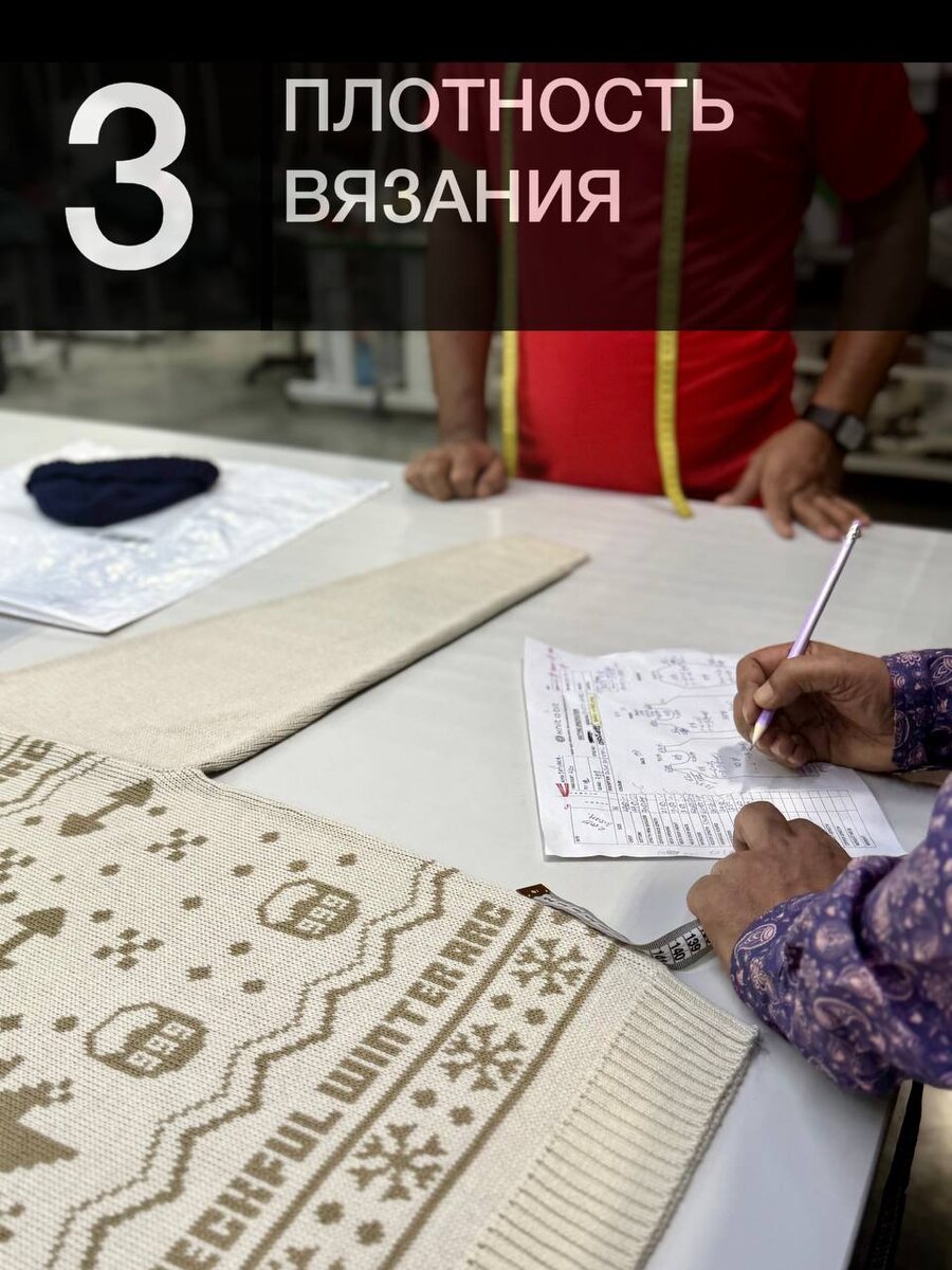 №3. Плотность вязания Один из самых недооценённых параметров в вязаном трикотаже - плотность. При этом именно она напрямую влияет на то, как изделие сидит и держит форму. Даже небольшое изменение плотности даёт заметную разницу: 1) отвяз меняет линейные размеры 2) полотно будет выглядеть более рыхлым или, наоборот, упругим 2) способность к растяжимости и формоудержанию меняется Важно понимать: плотность - это не просто настройка машины. Это сочетание пряжи, переплетения и, как результат, конечных свойств вязаного изделия. Что мы делаем на производстве: ✅ подбираем плотность под конкретную модель и пряжу ✅ фиксируем параметры после утверждения образца ✅ контролируем их в процессе вязания Если вы хотите, чтобы изделие выглядело стабильно не только в образце, но и в партии - напишите нам, поможем настроить вашу модель под производство.