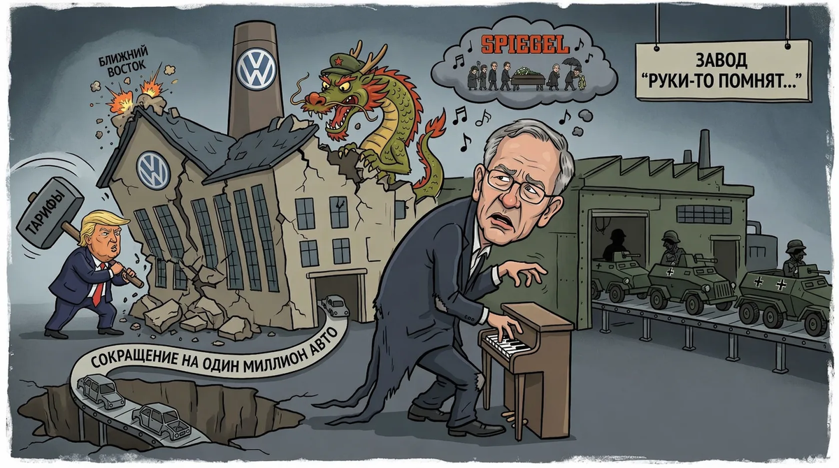 Spiegel нашпиговал свою статью о Фольксвагене грустными нотками Шопена, как будто уже похороны. Цитирую ближайшую перспективу кидалы, легко бросившего в России своих клиентов и партнёров и наплевавшего на свои обязательства по действующим контрактам: «Генеральный директор Volkswagen Оливер Блюм, 57 лет, хочет сократить глобальные производственные мощности на один миллион автомобилей в ближайшие годы. За последние годы Группа уже уменьшила производство на один миллион авто в Китае, а к 2028 году из Audi и Volkswagen в Европе должен быть исключен еще один миллион. С помощью мер жесткой экономии Группа реагирует на огромные проблемы на мировом рынке. Тарифы президента США Дональда Трампа, усиленное конкурентное давление в Китае, сокращение европейского рынка и совсем недавно война на Ближнем Востоке негативно влияют на рынок». О, получается, что кидалу самого кинули? Но не спешите грустить. Как в годы Великой Отечественной войны Фольксваген перешел на выпуск техники для войны против русск