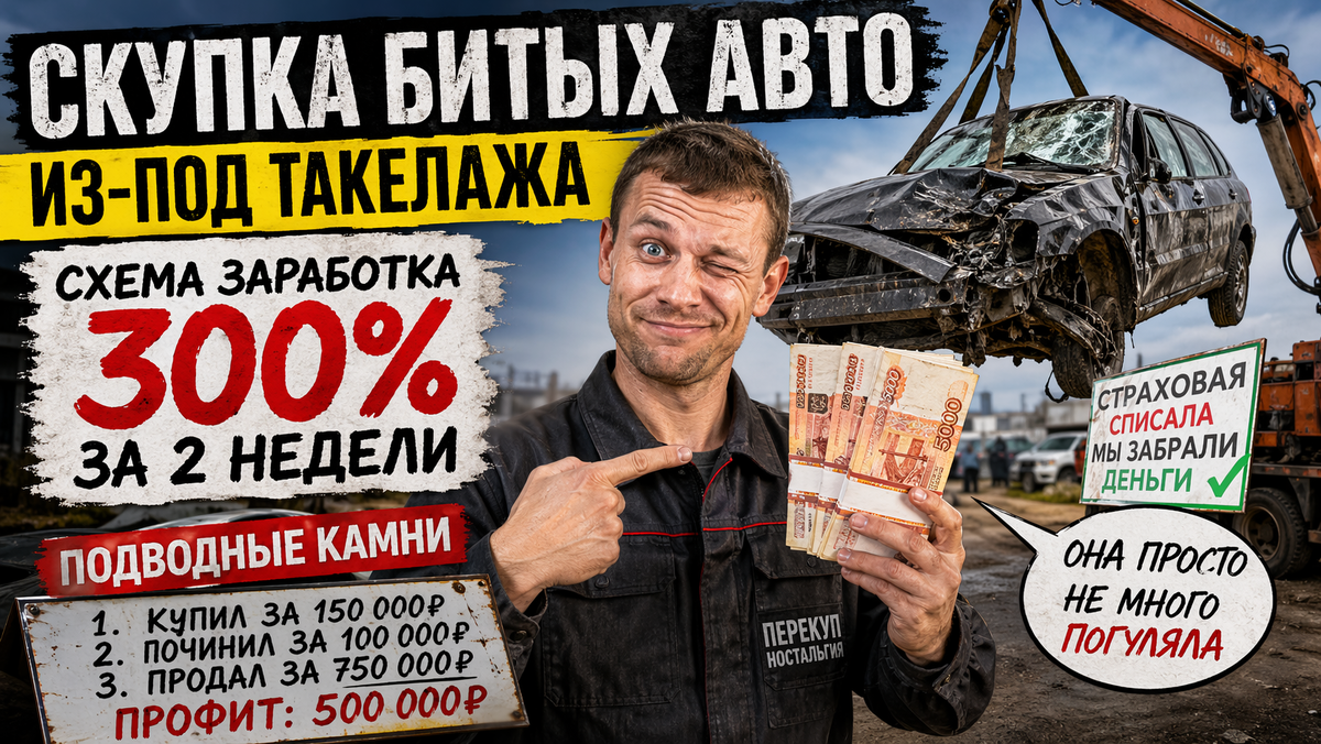 Друзья, привет. Если ты думал, что деньги пахнут, то ты просто не нюхал салон машины, которую вытащили из кювета краном. Сегодня разбираем самый хайповый способ заработка 2026 года — скупка битых авто с такелажа.
