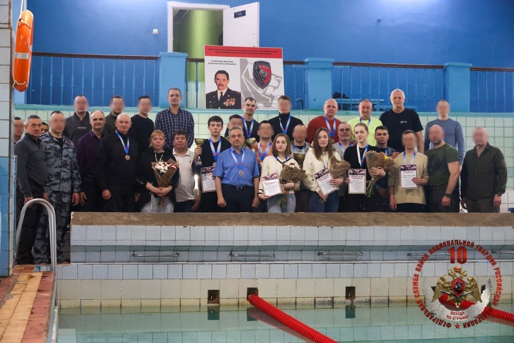 - эстафета 4х50 метров вольным стилем среди сборных команд. По результатам командного первенства высшую ступень пьедестала заняли представители команды СОБР «Гранит», второе место завоевали участники команды аппарата ГУ Росгвардии, третье место заняли участники команды Управления вневедомственной охраны. В завершение соревнований врио начальника Г