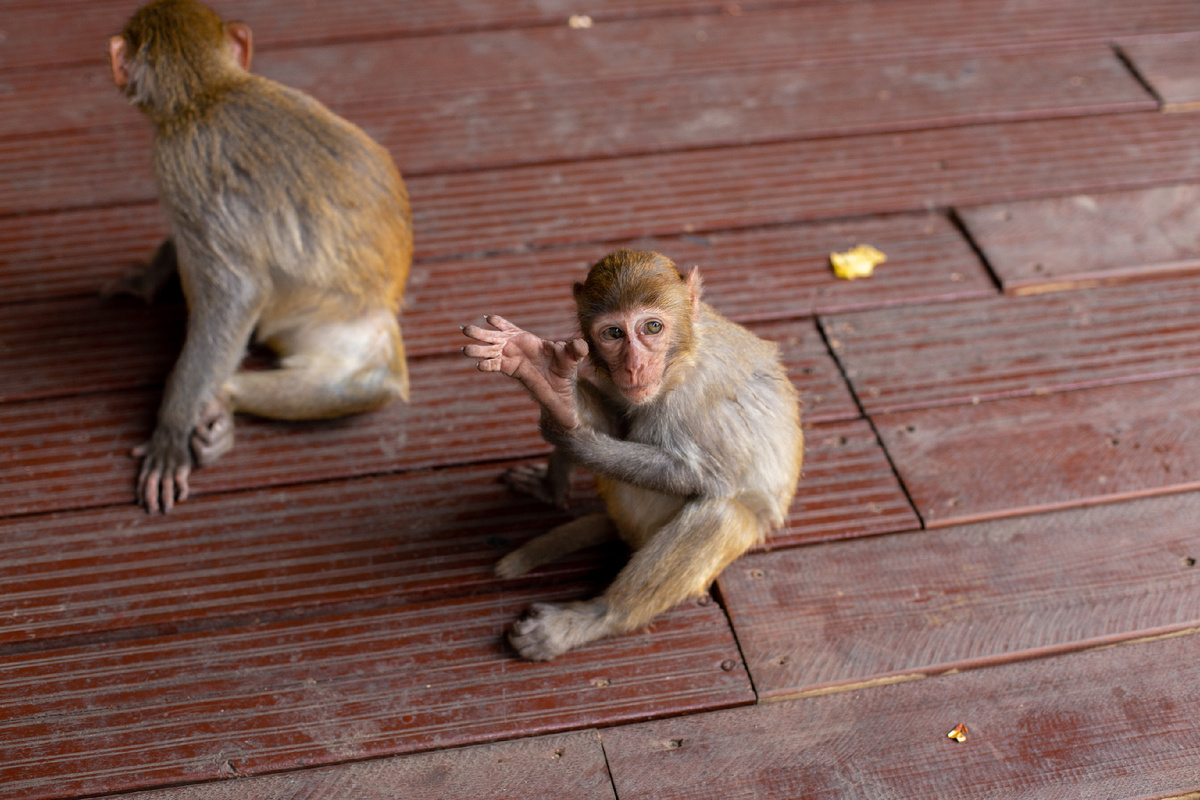 Вышли из кабинок и сразу оказались на площадке для кормления обезьян, где также продают еду для этого.
