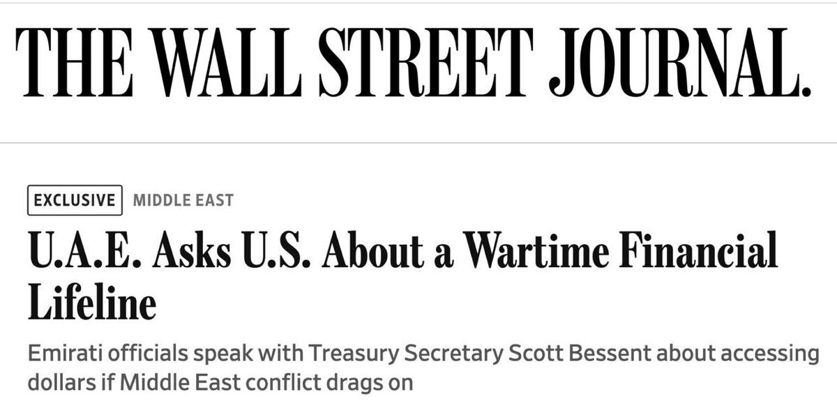Американская газета The Wall Street Journal: ОАЭ допустили отказ от доллара в расчётах за нефть на фоне войны на Ближнем Востоке и давления