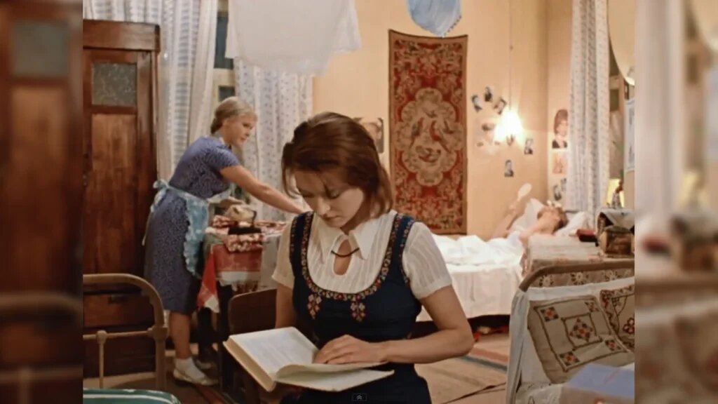 Одним из самых показательных фильмов в этом смысле стала картина «Москва слезам не верит». История героини, прошедшей путь от рабочей общежитской комнаты до собственной квартиры в престижном доме, фактически отражает социальный лифт эпохи. В начале зритель видит типичное общежитие конца 1950-х: несколько человек в одной комнате, минимальный набор мебели, ковры на стенах как элемент уюта и попытка персонализации пространства. Это был стандарт для миллионов людей, переезжавших в крупные города в поисках работы.