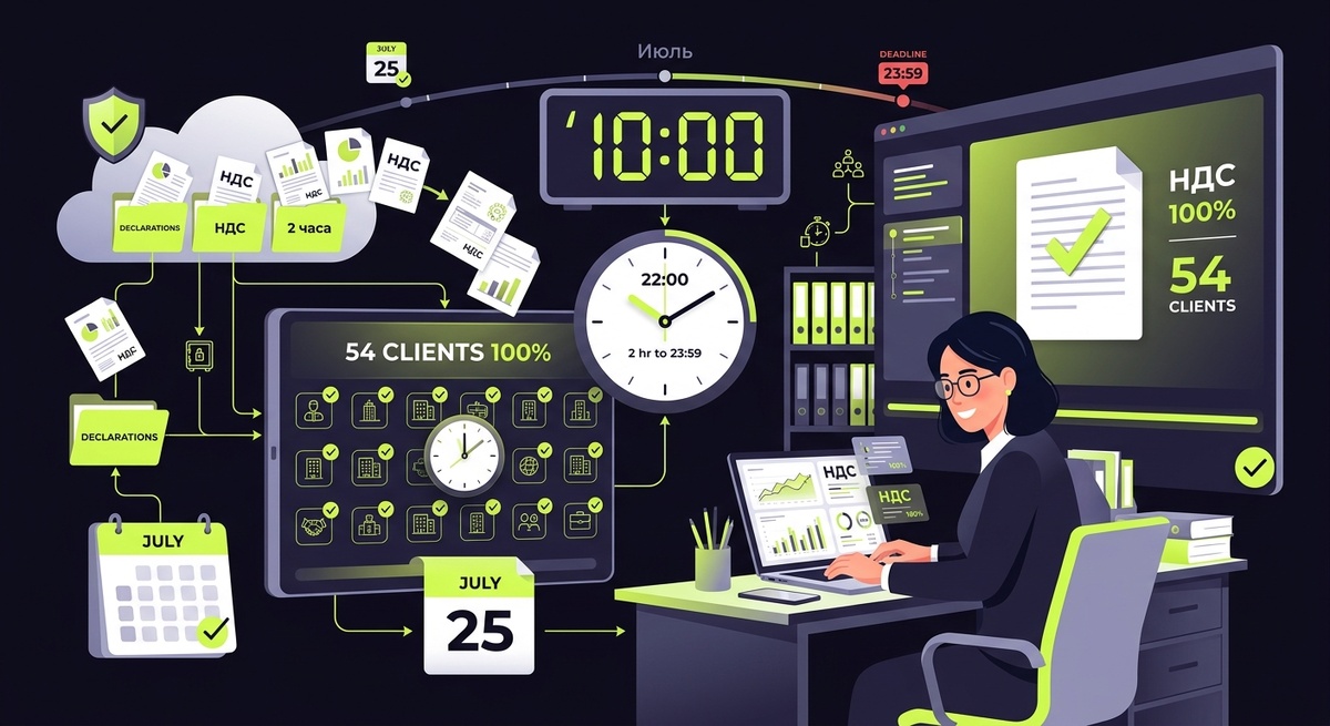 Это история про июль 2026 года. Про 54 клиента, 312 недостающих документов и 27 июля - крайний срок сдачи НДС-деклараций за второй квартал. Она реальная ровно настолько, насколько реальна ситуация, которую многие из вас проживали лично.