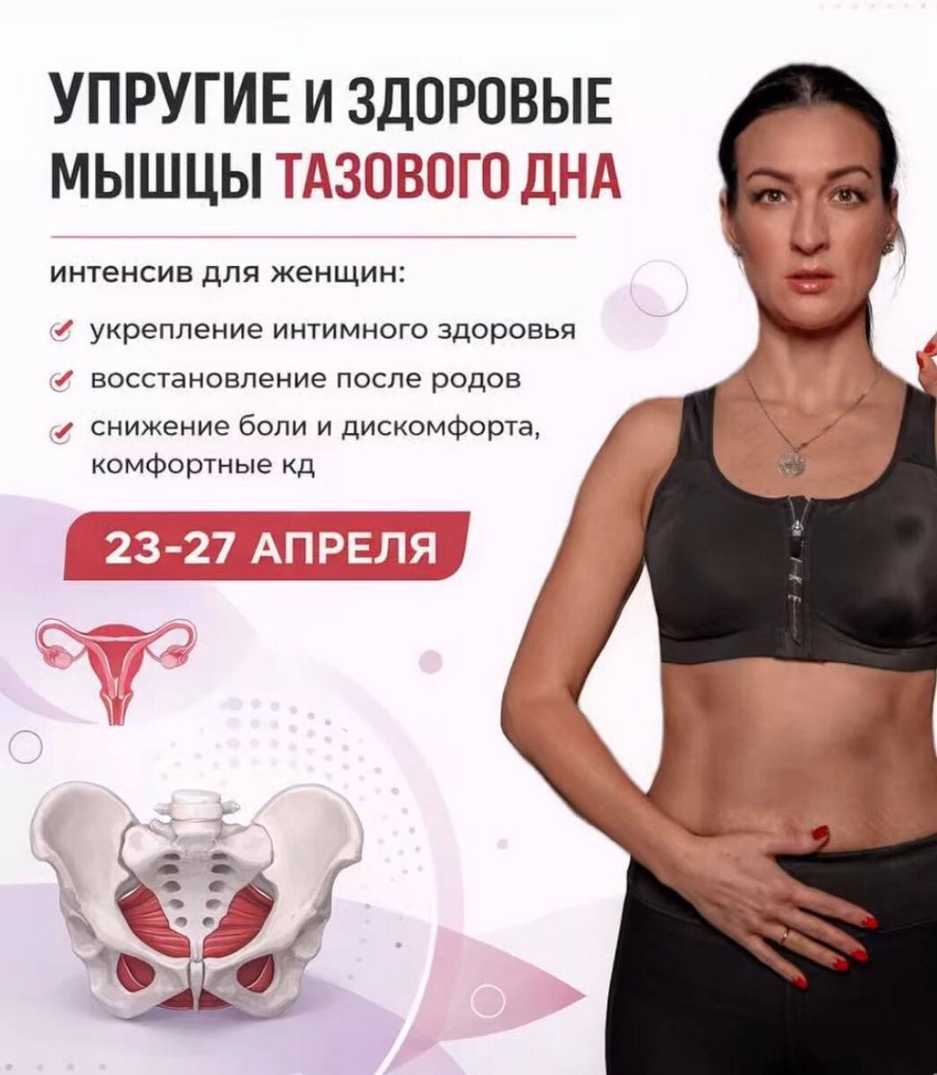! Я рада видеть вас здесь! Мы будем работать над тазовым дном, и я уверена, что вы почувствуете первые результаты уже после первого дня! Мы затронем все важные моменты, связанные с твоим здоровьем и комфортом. Важная информация: ✨ 1 день — Практика самообследования (18:00 по МСК) Мы разберём, как проверить своё состояние: есть ли опущение, раскрытие вагины, и на какой стадии это может быть. 🛑 2 день — Что нельзя делать, чтобы не навредить женскому здоровью Какие упражнения и виды спорта могут быть вредными для интимных мышц, а какие помогут. 💨 3 день — Влияние дыхания на тазовое дно Вы поймете, какое дыхание опасно и как работать с ним, чтобы избежать проблем. 🧘♀️ 4 день — Упражнения на снятие блоков с тазового дна Мы разберём, почему у женщин часто возникают блоки в этой области и как с ними работать. Кстати, мужчинам, в этом вопросе, проще. 💡 5 день — Эфир с разбором вопросов + подарки! 🎁 В последнем эфире мы подведём итоги и я отвечу на все вопросы. И, конечно, я подгот