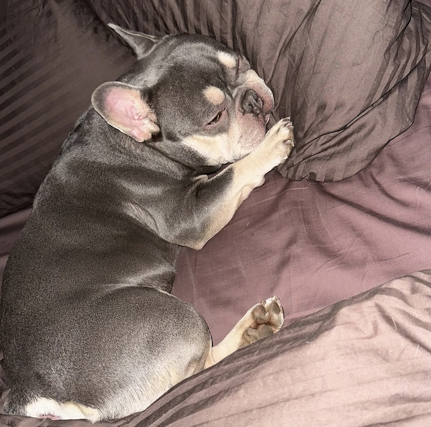Линька у французских бульдогов процесс особенный. Два раза в год, весной и осенью, они обновляют шерсть основательно. В это время кажется, что из собаки сыплется песок. Белый, колючий, вездесущий песок. В остальное время линька фоновая, но не прекращается никогда.
