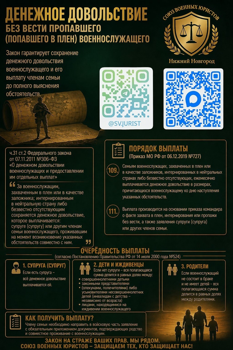 💰 Денежное довольствие без вести пропавшего (попавшего в плен) военнослужащего