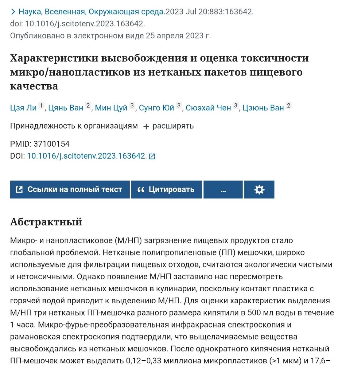 ⤵️ Видео смонтировано, чтобы нас пугать. Меня веселит значок черепа в уголке ☺️ Не люблю нагнетание через страх. Давайте разберёмся. Ссылка на исследование. В исследовании рыбок Данио рерио (гены на 70% как у нас) помещали в воду с микро- и нанопластиком от варки пакетов. Анализировали их жабры и печень. Было обнаружено, что это, действительно, вызывает окислительный стресс в зависимости от времени (сравнивали 2 и 14 дней в этой воде). Вывод: "пищевой пластик, например, нетканые пакеты, следует с осторожностью использовать при приготовлении пищи, поскольку при нагревании он выделяет большое количество М/НП, что может представлять угрозу для здоровья человека." ⚖️ Что раздуто в видео? ❗ 23 исследования про пакеты для варки круп не было, было одно. ❗ «Отравление за 20 минут» - манипуляция. ❗ 30 миллиардов наночастиц пластика не попадут к вам в организм, они в воде от пакетика, который варили час. Что правда? ✔️ Исследование 2023 года про пакеты для варки круп есть. ✔️ Пакеты дей