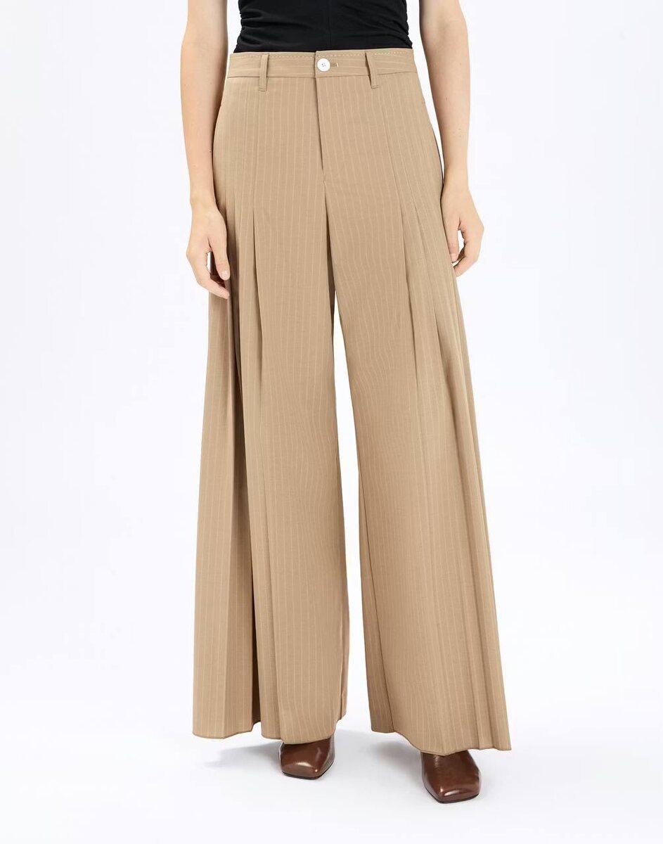 Воздушная ткань в тонкую полоску, невероятно широкие штанины и летящие боковые складки создают идеальный силуэт. Харизматичный акцент - контрастная декоративная строчка вдоль пояса. Уточнить наличие и получить консультацию можно по телефону: +7 (495) 229-84-15 📲Мы в МАХ — подписаться