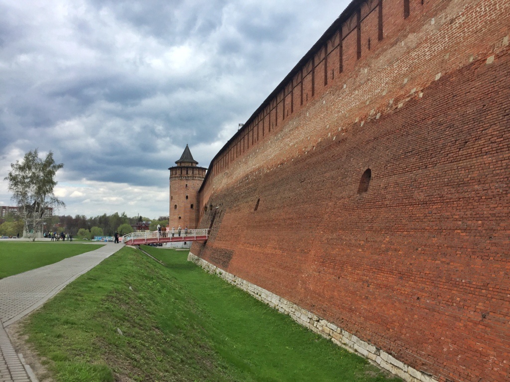 Первое удивление меня настигло, когда из окна авто я увидела стены Коломенского кремля. Очень мощные стены! Явно, свою функции они выполняли достойно. Печально, что сохранились только фрагменты — два прясла с башнями. Одна часть вдоль улицы Октябрьской и вторая — рядом с автовокзалом. Пока гуляли по центру, увидели еще пару одиноких башен. Я как-то не была готова к такому повороту)). Привыкла к «замкнутости» нашего Нижегородского Кремля.