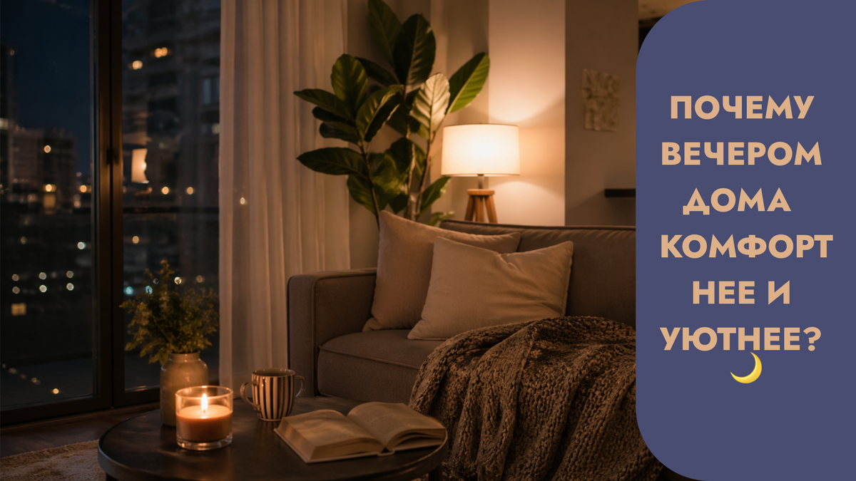 Тот же самый диван становится уютнее, тот же свет - мягче, пространство - спокойнее ✨ Хочется укутаться в плед, сделать чай и просто побыть дома ☕ Почему так происходит? Главная причина - это свет. Днём он яркий, равномерный,. Он показывает всё: детали, неровности, лишние предметы. Такой свет делает пространство более функциональным, но менее атмосферным. А вечером появляется другой сценарий. Лампы, торшеры, тёплые оттенки - свет становится мягким, направленным, с тенями 💡 Он не просто освещает, а создаёт настроение. Есть и психологический момент. Вечер - это сигнал для организма, что активная часть дня закончена. Мозг начинает расслабляться, снижает напряжение, переключается на отдых 🧠 И пространство автоматически воспринимается как более комфортное. Даже если ничего в нём не изменилось. Интересно, что вечером исчезает часть визуально