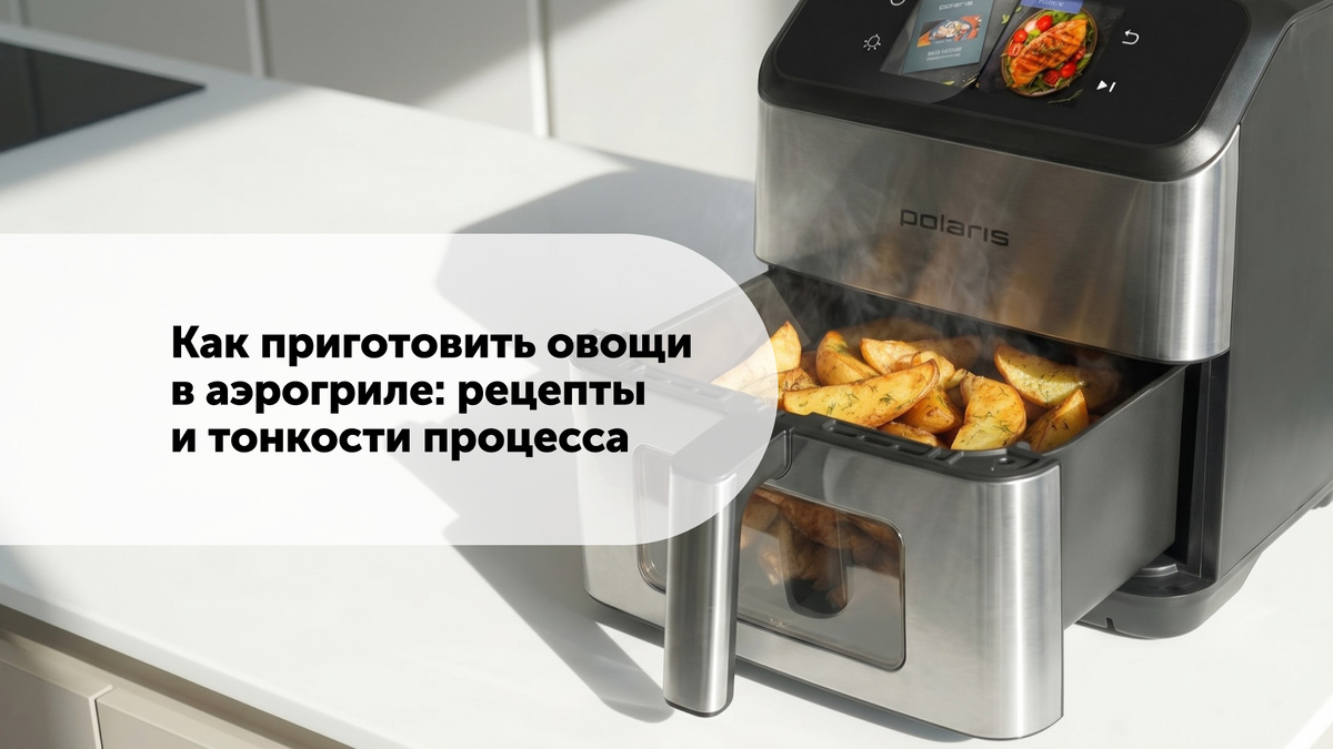 - Перегруженная чаша. Это главная ошибка. Когда овощи лежат в два-три слоя, горячий воздух не циркулирует между ними — и вместо запекания идет тушение. Готовьте одним слоем, а если продуктов много — партиями. Чаша на 6,5 л, как у аэрогриля Polaris PAF 9017DWS, позволяет закладывать большие порции и реже делить их на заходы.
