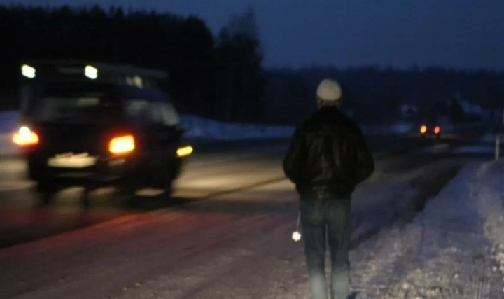 Выехали домой в 11:15 ночи. Едем по трассе, темно, дождь только что кончился, ни души. И вот на половине пути, примерно за 6 километров до нашей деревни, видим: по обочине в нашу сторону идёт человек.