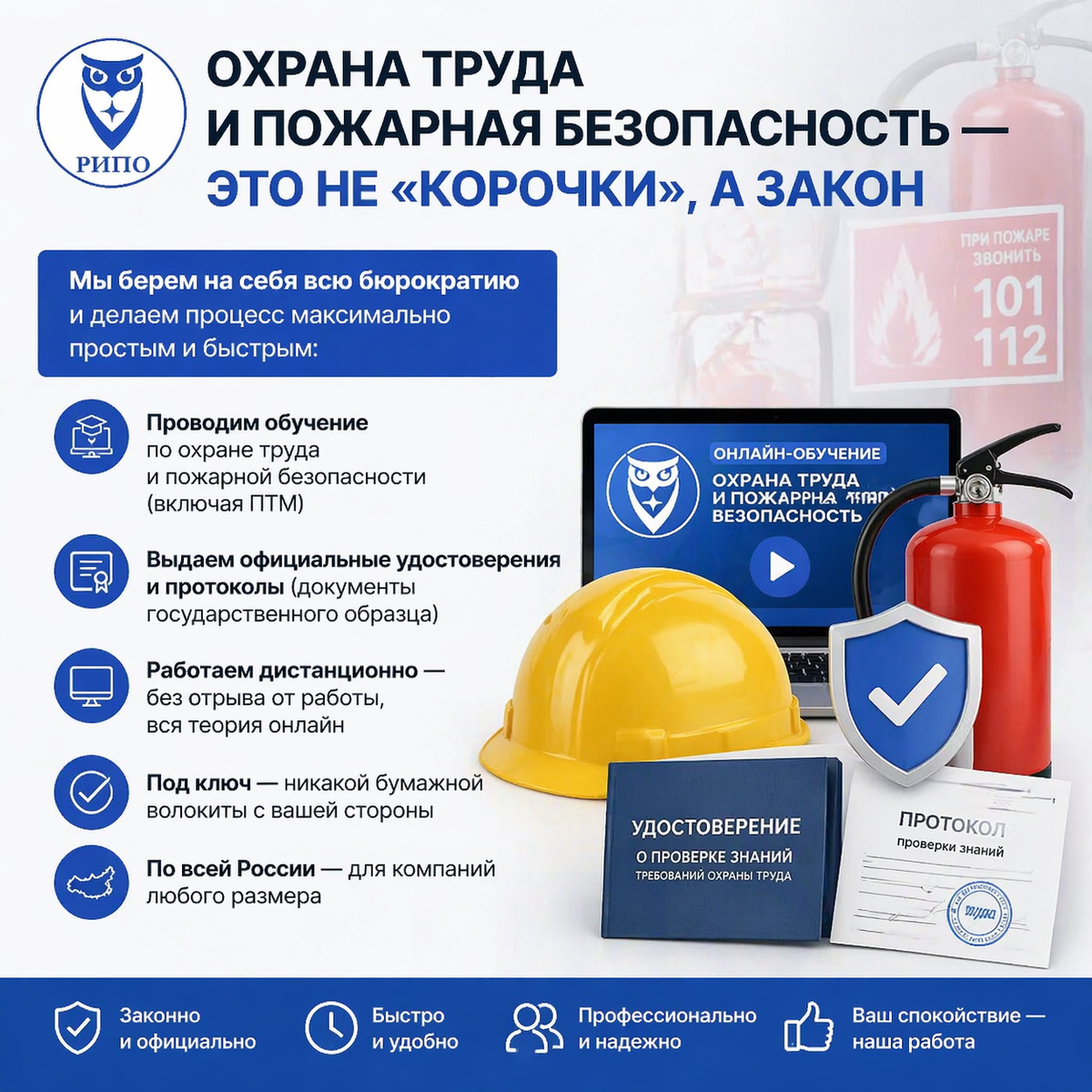 👉 «У нас маленькая компания, нас не тронут» ❌ Это опасное заблуждение. По закону обучение по охране труда и пожарной безопасности обязательно для ВСЕХ организаций и ИП с сотрудниками. Независимо от сферы деятельности, численности персонала и формы собственности. Давайте разберемся, почему это требование нельзя игнорировать и как мы можем сделать его выполнение максимально простым. 📌 Охрана труда