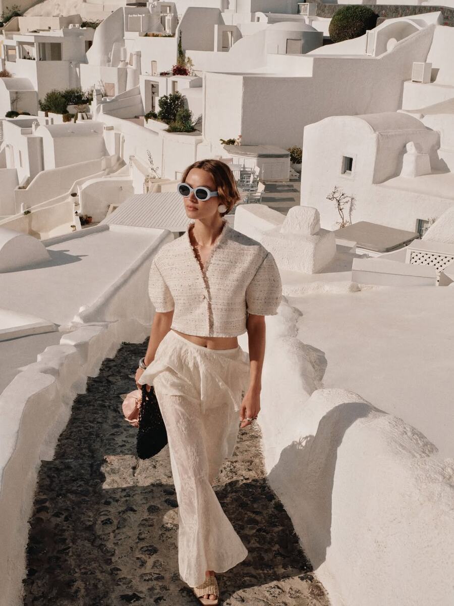 LOVE REPUBLIC начинает сезон весна–лето 2026 новой рекламной съёмкой с нидерландской моделью Биргит Кос. И это как раз тот случай, когда хочется не спешить с разбором трендов, а просто посмотреть и немного выдохнуть. Санторини, белые улицы, море, мягкий свет и вещи, в которых даже самый обычный день выглядит красивее. У коллекции очень приятное настроение. Она будто собрана для отпуска, в котором никуда не надо торопиться: легкие платья-бандо, молочные комплекты, воздушные юбки, фактурные жакеты, пижамные сеты и вещи с кружевом. Все выглядит женственно, расслабленно и при этом не скучно. Особенно хорошо здесь работает контраст. Нежные ткани, вышивка, прозрачность и мягкие силуэты сочетаются с грубоватыми сапогами, объемными вещами, плетеными сумками и яркими очками. За счет этого коллекция не выглядит слишком “открыточной”. Она вполне может работать не только в отпуске, но и в городе, когда хочется добавить в день немного воздуха и красоты. Наверное, в этом и есть главный плюс этой съё