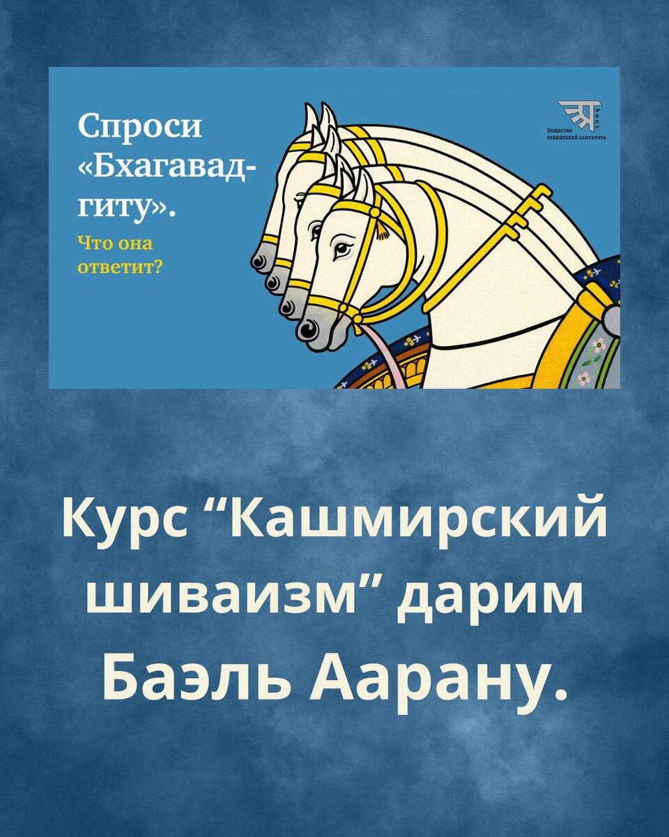 ! Розыгрыш завершен. Дарим запись курса «Кашмирский шиваизм. Часть 1»! Поздравляем победителя - Баэль Ааран.🎉 Розыгрыша провели и запускаем новый! И снова разыгрываем запись курса «Кашмирский шиваизм. часть 1». Она может стать вашей! Просто сделайте репост этой записи к себе на страницу, и вы автоматически участвуете в розыгрыше. Можно делать репосты в других социальных сетях и шансы выиграть запись курса увеличиваются. Итоги подведем через несколько недель. А теперь — мудрость дня! Спроси «Бхагавад-гиту». Что она ответит? «Бхагавад-гита» — это 700 стихов-шлок, в которых заключена вся философия жизни. Диалог, который ведёт к глубокому понимаю. Предлагаем необычный формат: позвольте этой мудрости «ответить» и вам. Это не гадание, а скорее игра-размышление, точка для внутреннего диалога. Как это работает: 1. Загадайте вопрос, тему или просто своё состояние. 2. Напишите в комментариях любую цифру от 100 до 200. 3. Мы откроем «Бхагавад-гиту» на стихе (шлоке) с этим порядковым н