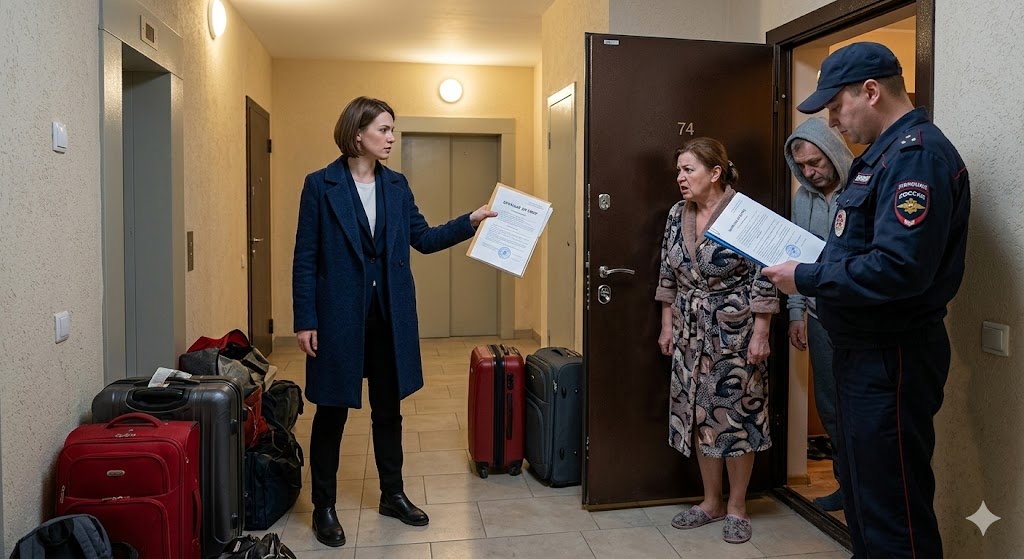 — Квартира не в совместной собственности, — Аня протянула им папку с документами и свой паспорт. — Вот выписка из ЕГРН свежая. Вот брачный договор. Я — единственный собственник. Человек, который находится внутри со своими родителями, не имеет к этой недвижимости никакого отношения. Более того, он здесь даже не прописан. Я прописала его у его родителей.