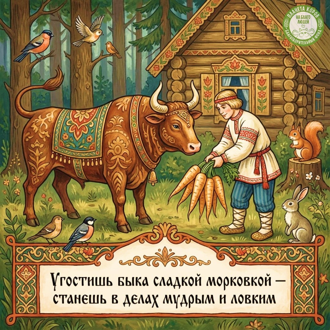🐄 Угостишь быка сладкой морковкой — станешь в делах мудрым и ловким.