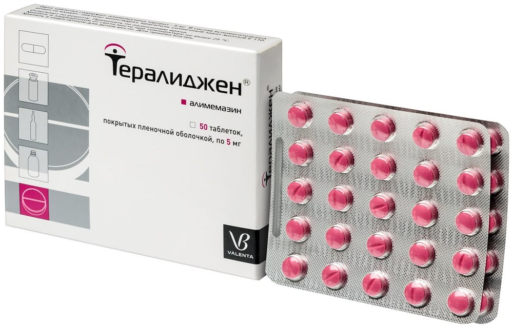 В справочнике лекарственных средств Тералиджен описывают как противотревожный и успокаивающий препарат. Активным веществом является алимемазин, который относится к группе блокаторов гистаминовых H1-рецепторов. Согласно инструкции успокаивающее и противотревожное действие обусловлено блокадой адренорецепторов ретикулярной формации ствола головного мозга. Немного истории Препарат был синтезирован в 1958 г. во Франции. В СССР он появился в 1960-е гг под названием «Терален». Лекарство назначалось как «малый» нейролептик с преимущественно седативным действием. Назначался часто в комбинации с антидепрессантами для лечения тревожных расстройств, депрессии. С 2000-го года препарат не производился в России. И лишь с 2008 г российская компания «Валента» вновь производит препарат, но уже под торговым названием «Тералиджен». Теперь уже он представлен как анксиолитическое и седативное средство. Применение в России В показаниях указан широкий спектр в лечении психических расстройств/заболевани