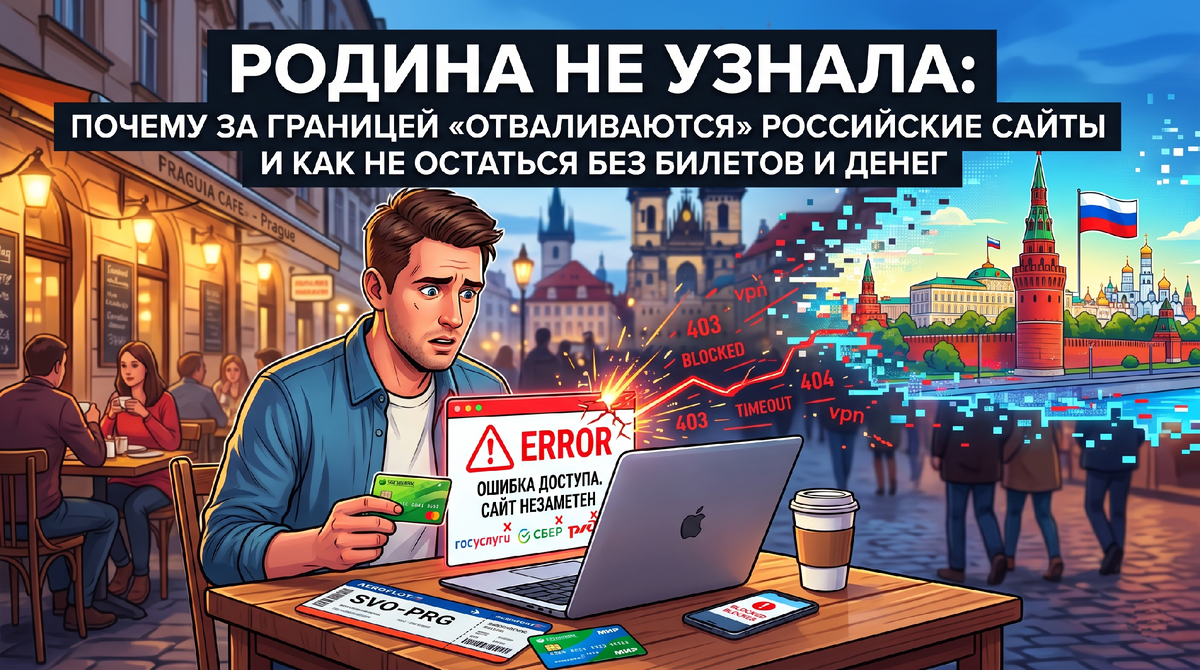 Ситуация абсурдная: гражданин РФ уезжает в Турцию или ОАЭ, пытается купить билет на «Аэрофлот» или зайти в свой банк, а в ответ получает «Доступ запрещен» или бесконечную загрузку. Ирония в том, что даже наш «безопасный» мессенджер MAX тоже часто отказывается работать за рубежом. Всё дело в технологии Geo-blocking (геоблокировка — ограничение доступа к ресурсу на основе географического положения пользователя). Как это происходит: Зачем это делают?