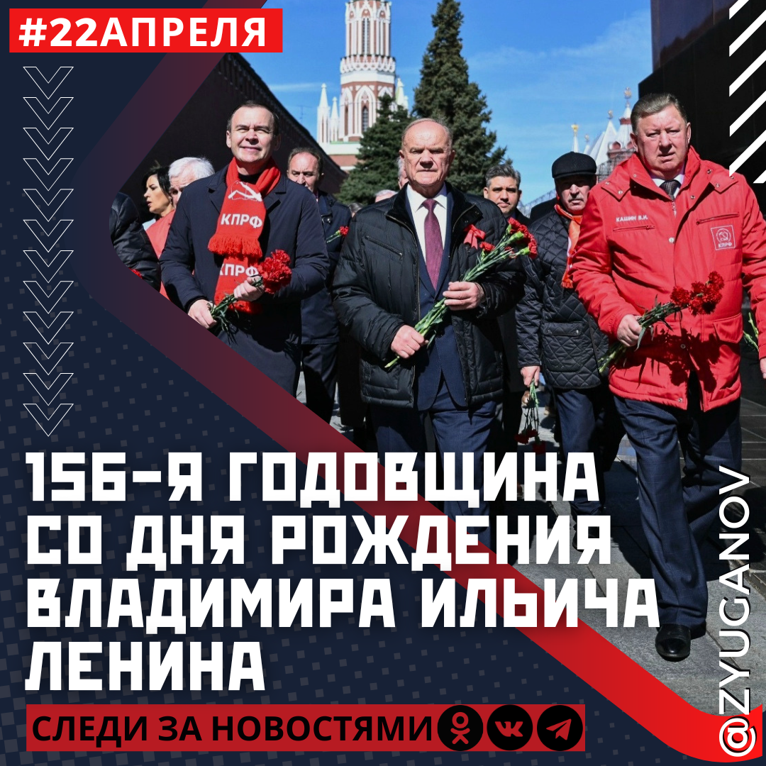Сегодня 156-я годовщина со дня рождения Владимира Ильича Ленина - гения, открывшего человечеству новый мир. Ленин создал государство, где правил труд, а не капитал. Где впервые в истории каждому были гарантированы бесплатные образование, медицина и 8-часовой рабочий день. Более гуманной власти, чем советская человечество не придумало. Всё служило прежде всего детям, женщинам и старикам. Благодаря ленинско-сталинской модернизации стал явью космический полёт Гагарина, которому аплодировала вся планета. Сегодня, когда против Русского мира ведётся война на уничтожение, нам важно обратиться к опыту Ленина. Лишь ему удалось собрать распавшуюся империю в форме СССР мирно и демократично. Рабочие, крестьяне, инженеры и учителя проголосовали за то, чтобы жить вместе и обеспечить каждому достойную жизнь и уверенное будущее. Если мы хотим побеждать, нам необходимо руководствоваться идеями Ленина. Нас спасёт социализм и справедливость. У КПРФ есть Программа Победы. Её реализация невозможна без опор