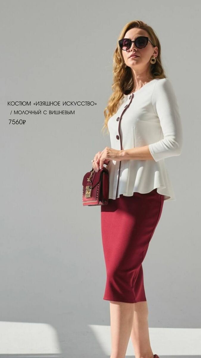✨ 🤍Костюм «Изящное искусство» в изысканном молочном оттенке с вишневым акцентом. Стоимость: 7560₽ Жакет с баской красиво подчеркивает силуэт, а юбка-карандаш завершает образ. Плотный вискозный джерси приятно ощущается на коже и дарит комфорт в течение дня. Это не просто костюм. Это ваше настроение и стиль. Чувствуете это настроение? Ставьте ❤️ 🔗 с оформлением поможет менеджер @oksana_rodintseva Канал в MAX