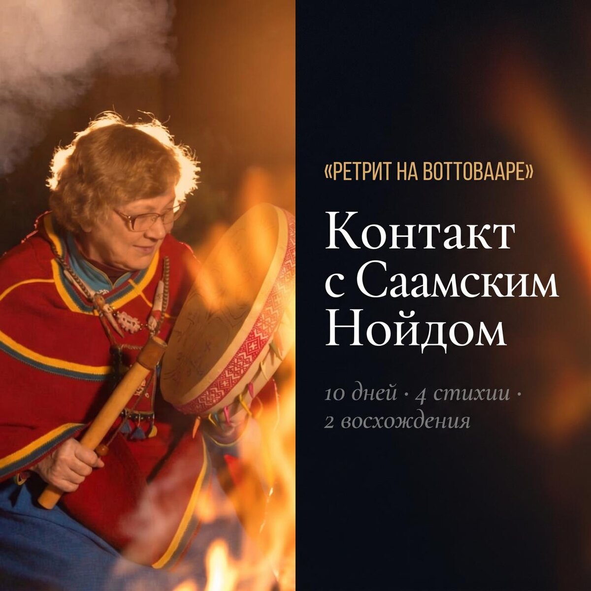 Надежда Фенина — саамский нойд, носитель северной ритуальной культуры. Не лектор, не актриса в костюме. Человек, для которого обращение к огню, воде, земле и ветру — способ жить. Этим летом Надежда проведёт 10-дневный ретрит на Воттовааре. Не экскурсия. Не поход. Живой контакт — со стихиями, с горой и с Надеждой лично. ◆ Ежедневные круги у костра — истории, ритуалы, ответы ◆ Практики 4 стихий — вода, земля, растения, огонь ◆ Два восхождения на гору с практиками на сейдах ◆ Ночь огня с Саамским Нойдом ◆ День личного контакта — индивидуальные сессии ◆ Круг передачи и благословения Группа 15–20 человек. Палаточный лагерь у подножия горы. Костёр каждый вечер. Связи нет. Тишина есть. Для тех, кто хочет пройти путь, а не купить развлечение. Программа и запись → https://vottovaara.info/retreat/noaid/