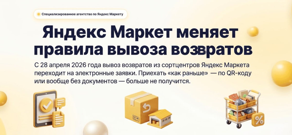QR-код при вывозе возвратов из сортцентров ЯМ больше не работает. С 28 апреля — только электронная заявка в личном кабинете. Приехать без неё = уехать ни с чем. Разбираем мясо. 📈 🔧 Как оформить заявку: — Личный кабинет → Заказы → Возвраты и невыкупы → Создать заявку — Указать СЦ, магазины, контакты курьера и номер для SMS-кода — Скопировать ссылку и отправить курьеру в мессенджер — Курьер подписывает электронный акт кодом из SMS на точке ✅ Три дедлайна которые нельзя пропустить: — 15 дней — срок действия заявки, потом отменяется автоматически — 48 часов — загрузить фото расхождений/повреждений в заявку — 30 дней — подать претензию по спорным случаям ⚠️ Кому действовать срочно: — Не проверяли кнопку «Создать заявку» в кабинете — зайдите сегодня — Работаете с Домодедово — пропуск оформляйте за 30 минут до въезда — Курьер едет без инструкции — дайте чек-лист до первого выезда 💡 Совет от Marketplaceexpert: Консолидируйте вывозы: несколько магазинов — одна заявка, один рейс, меньше з