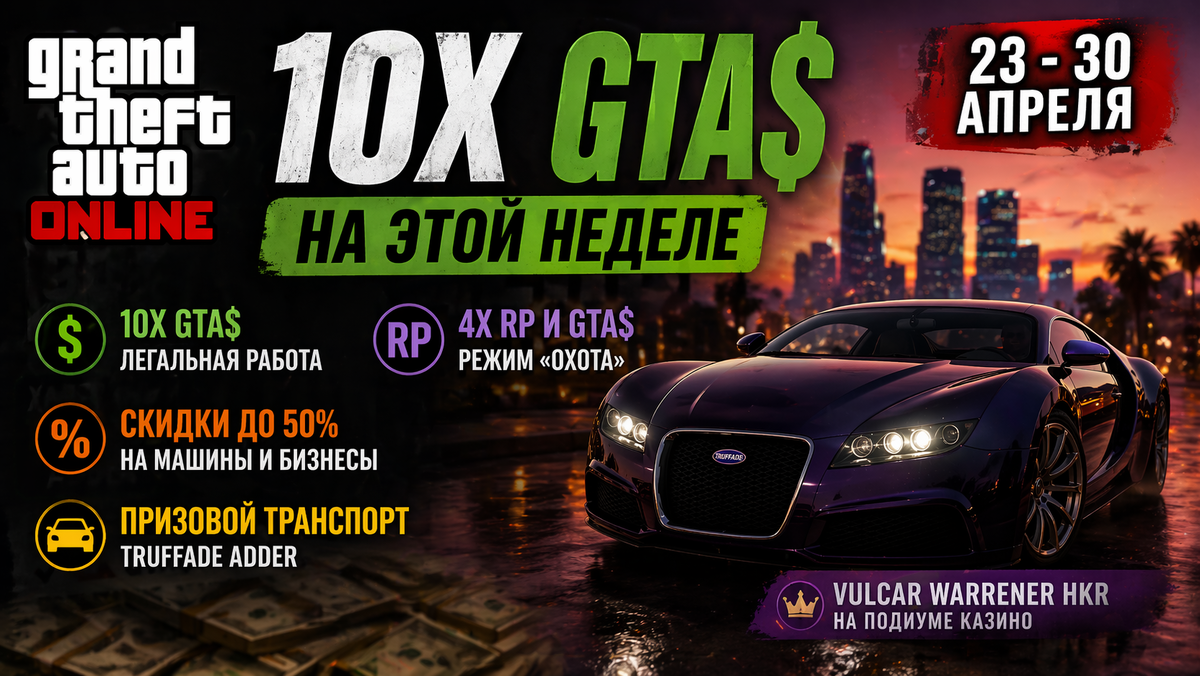 И не просто так. 10x GTA$ за легальную работу — это редкий случай, когда игра буквально толкает тебя в конкретную активность. Параллельно усиливают: • режимы “Охота” с 4x выплатами