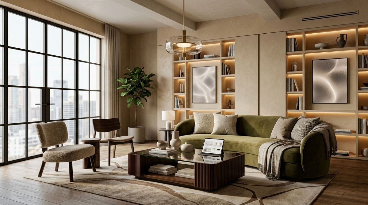 Я собрала главные тренды интерьера 2026, которые AI-дизайнеры предсказывают чаще всего, — и для каждого добавила конкретный шаг, который можно сделать прямо сейчас, без большого бюджета.