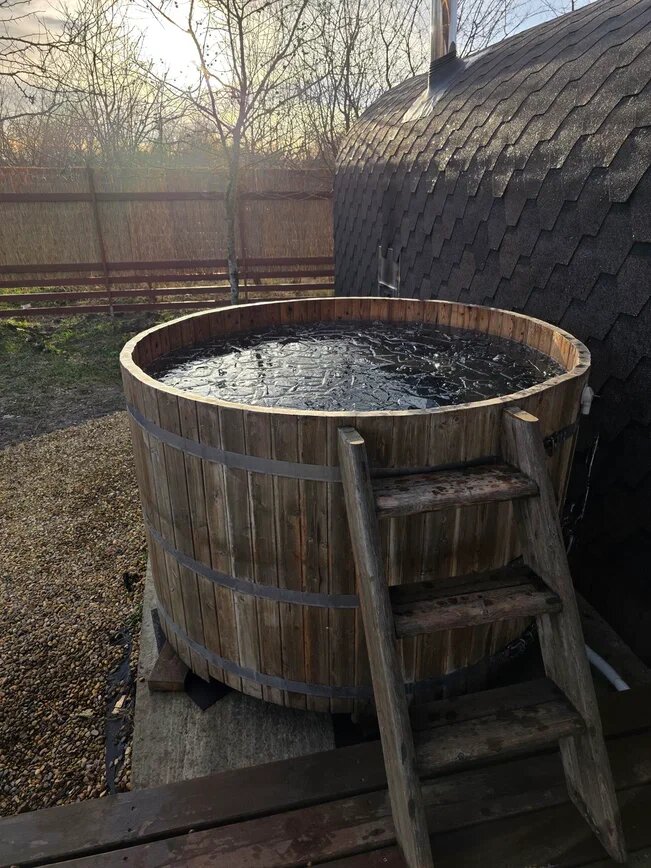 Чан на открытом воздухе. Чан в закрытом помещении — это почти сауна. Настоящее удовольствие — когда над головой небо, а вокруг природа.