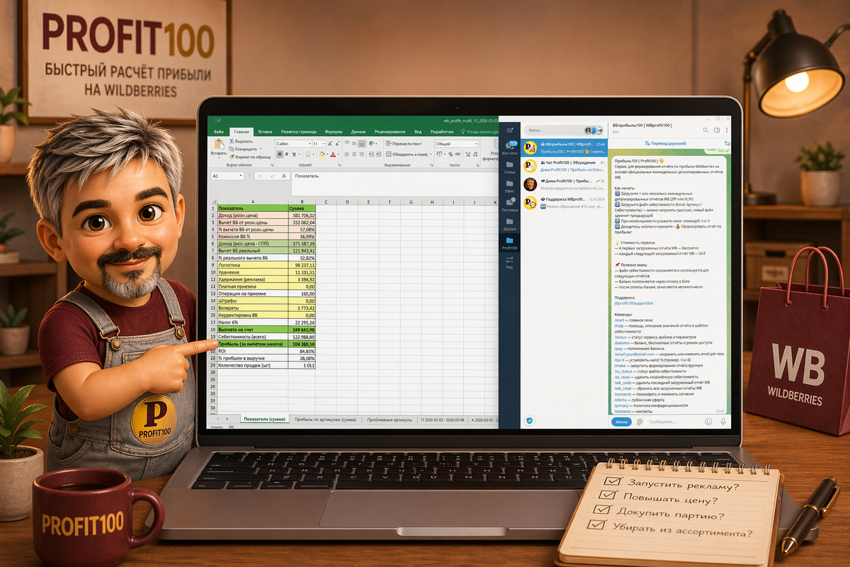 Одна из самых частых проблем продавца на Вайлдберис — на расчеты уходит слишком много времени. Открываешь таблицы, вспоминаешь себестоимость, считаешь комиссии, добавляешь рекламу, логистику, хранение, потом еще вспоминаешь про налог. И в итоге даже простой ответ по одному товару превращается в отдельную задачу. Но не всегда нужен сложный путь. Во многих случаях продавцу нужен быстрый расчет прибыли WB, чтобы понять, стоит ли вообще копать глубже. И вот тут Telegram-бот удобнее, чем большие кабинеты и постоянные подписки. Почему? Во-первых, это быстро. Не нужно заходить в большой сервис ради одной задачи. Во-вторых, это удобно. Telegram всегда под рукой. В-третьих, это честная модель. Ты не переплачиваешь за десятки функций, которыми не пользуешься каждый день. Для Продавца особенно важно быстро проверить товар перед решением: • запускать ли рекламу; • повышать ли цену; • докупать ли партию; • убирать ли товар из ассортимента. Если на каждую такую проверку нужно полчаса, решения начина