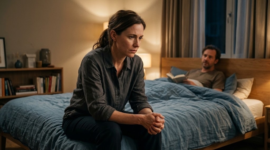 Желание редко включается по команде. Особенно если женщина весь день держала на себе работу, быт, ребёнка, тревогу за родителей и бесконечный список задач в голове. После такого перегруза тело не переходит в чувственный режим по щелчку.