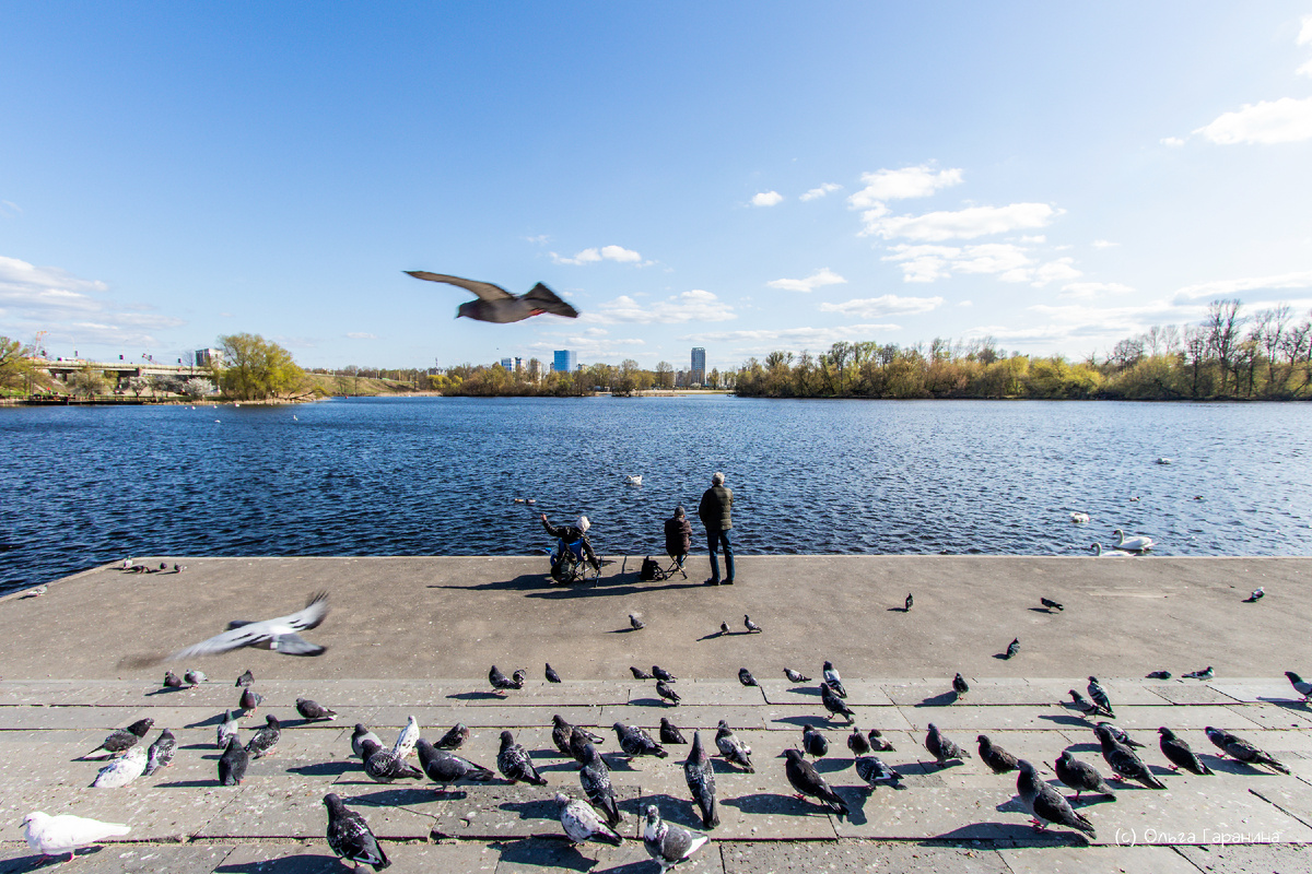 Вернемся к птицам. Если у вас нет ничего для птичек, то прям на набережной стоят автоматы, где можно купить за 1,30 бел.руб. порцию корма для пернатых. Не забываем, что кормить птиц хлебом и хлебобулочными изделиями не желательно. Только специальный корм, нарезанные мелко овощи или зерновые.