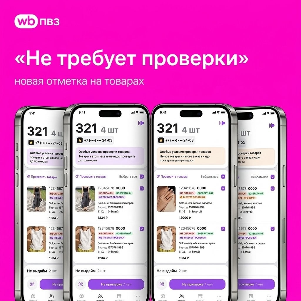 Wildberries тихо, но верно тестирует новую систему возвратов. Теперь на некоторых товарах в ПВЗ появляется загадочная отметка «Не требует проверки». И это не баг, а новая фича маркетплейса. Я прошерстила внутренние каналы WB, почитала, что пишут в чатах ПВЗ, и готова объяснить, что происходит. Впервые об этой отметке стало известно из новостного канала для сотрудников пунктов выдачи. В общем, готовьтесь. Это не отметка о качестве товара. Это отметка о статусе покупателя и новой программе лояльности. Как это работает: WB выбрал отдельную категорию «золотых» клиентов (тех, кто редко возвращает товары и много покупает). Для них маркетплейс тестирует «Простой возврат». При сканировании QR-кода такого покупателя в ПВЗ появляется золотая звёздочка — сигнал, что перед вами привилегированный клиент с особыми условиями. И вот для товаров, которые выбирают такие «золотые» клиенты, в системе ПВЗ и появляется эта отметка «Не требует проверки». Она означает, что WB берёт на себя все риски, связанны