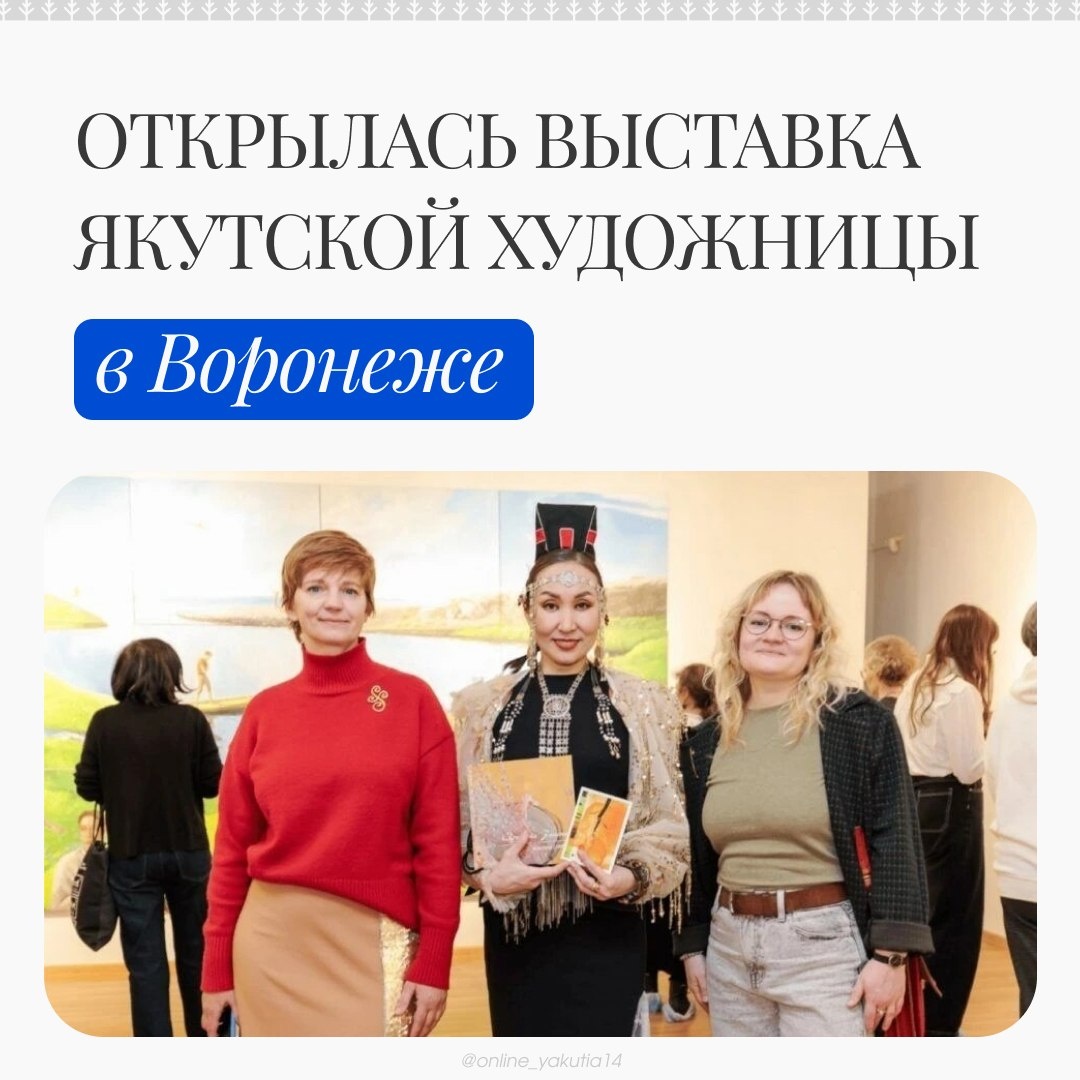 Персональная выставка «Соль земли» открылась в Воронежский областной художественный музей имени И.Н. Крамского. Посетить выставку можно до 10 мая 2026 года. Экспозиция объединила более 70 произведений. В нее вошли пейзажи, написанные в разных регионах России: от южных морей до Арктики, портреты деятелей культуры, искусства и политики Сибири и Дальнего Востока, а также серия работ, посвященная пословицам и поговоркам народов России. Выставка проходит в рамках проекта «НАШИ! Художники-современники» и приурочена к Году единства народов России. Помимо экспозиции, художница провела в Воронеже мастер-классы по народным узорам и лекцию о якутских легендах. Online Якутия | Ждем вас в МАХ