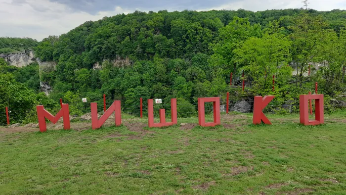 Экстрим-парк «Мишоко» находится на южной окраине села Каменномостский. Чтобы сюда доехать, нужно с улицы Мира или трассы А-159 свернуть на Железнодорожную улицу и проехать до перекрёстка с улицей Зелёная и свернуть на неё. Ориентиром в этом месте будет трансформаторная электрическая будка. Доехав до конца улицы Зелёная, нужно продолжить движение по улице Лесная в том же направлении, сделав небольшой зигзаг вправо. За селом останется проехать ещё метров 300. В конце страницы представлена карта проезда к парку. Парк называется Мишоко, потому что располагается на краю ущелья с таким же названием. К тому же по дну ущелья протекает река Мишоко. Со стороны обрыва территория парка огорожена тросами, заходить за которые вы сами не захотите — обрыв около 100 метров. Рельеф ущелья Мишоко и сподвигнул организаторов сделать это место парком экстремальных развлечений. Сами мы развлекаться не собирались. Мы приехали сюда только лишь за тем, чтобы посетить это место как достопримечательность. Визжащи
