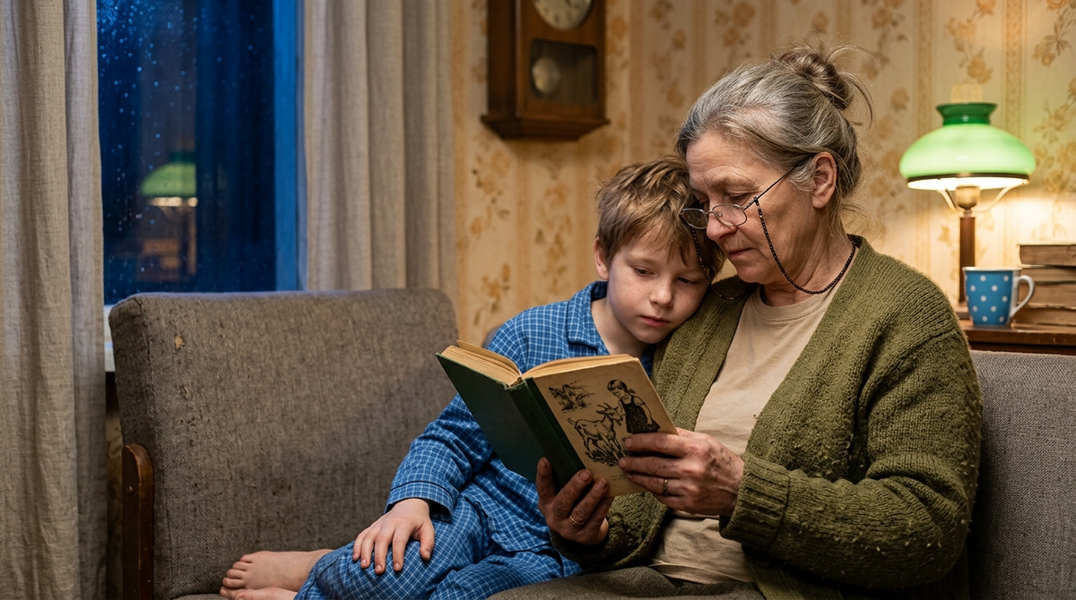 Я взяла книжку. Открыла на первой странице, где ещё стояла старая фиолетовая библиотечная печать, уже почти стёртая. Он сел рядом, положил подбородок мне на плечо. От него пахло детским шампунем и чуть-чуть дождём.